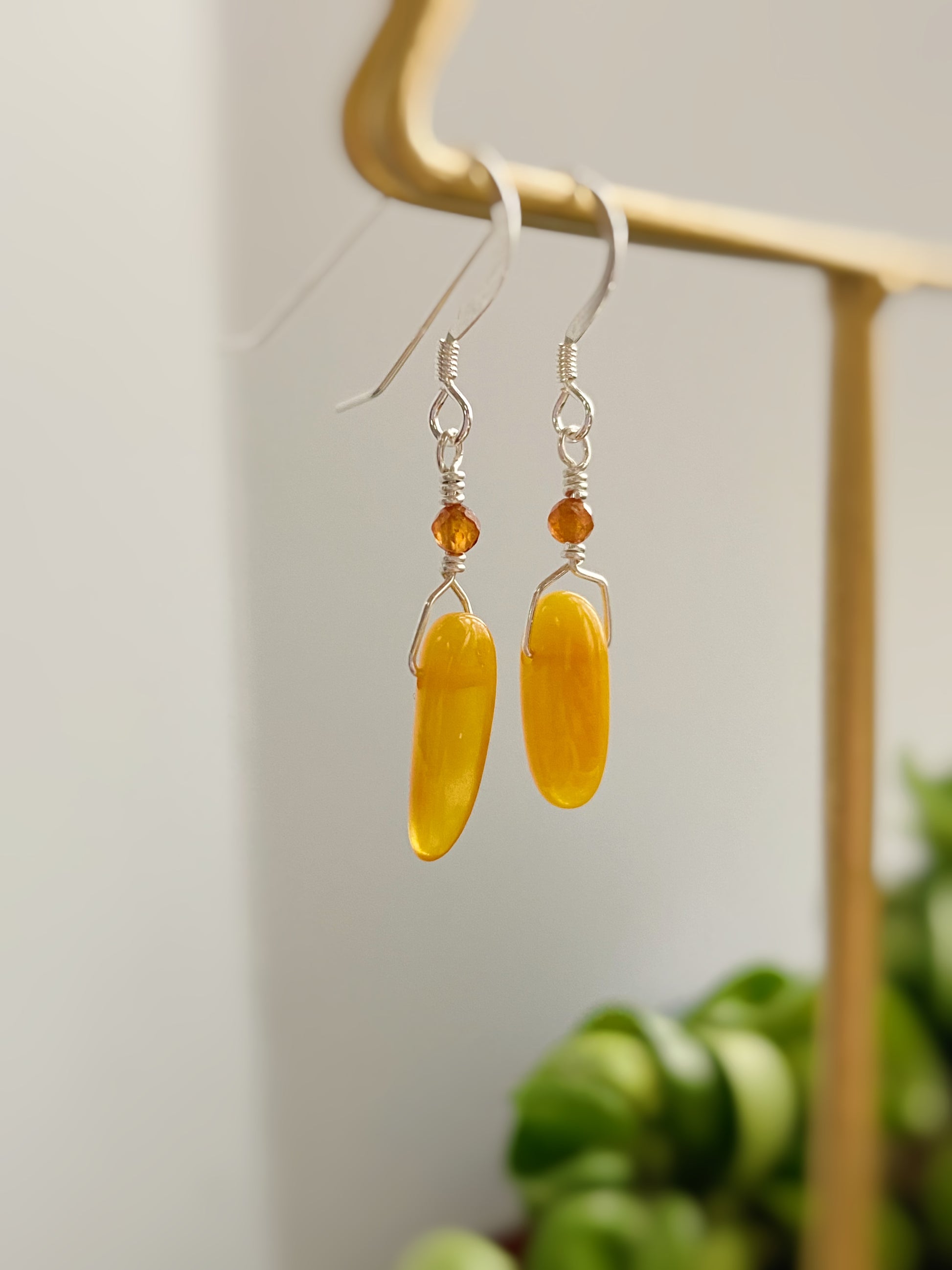 Amber is a natural material made up of fossilized tree resin. It varies in color from yellow to brown to red and is often transparent with plant or insect inclusions. Baltic Amber, which is usually considered to be the finest, was formed from the resins of coniferous trees 30 to 60 million years ago but younger Ambers exist and are known to come from the Dominican Republic. Amber can be ignited by a match and smells like incense and when rubbed with a cloth it becomes electrically charged and can attract small particles. The largest deposit in the world is in Kaliningrad, Russia and only 15% of what is mined is suitable for jewelry. There are also large reserves on the seabed of the Baltic. After heavy storms it is common for Amber have washed up on shore or to be found in shallow waters.