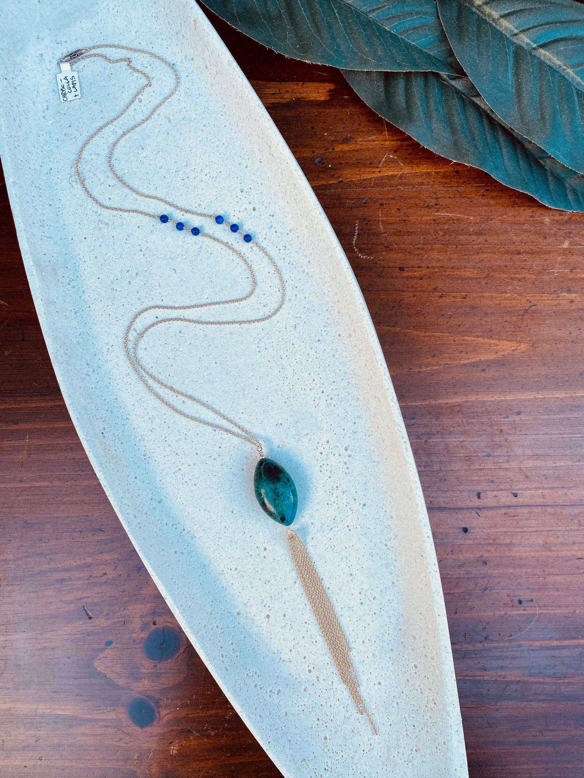 Chrysocolla & Lapis with Sterling Fringe Necklace
