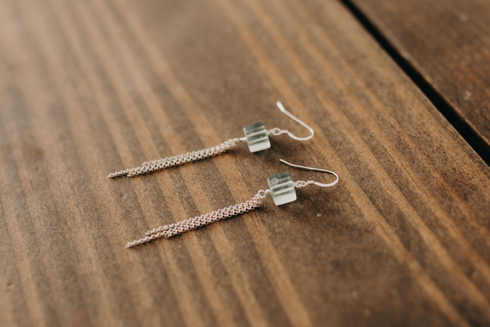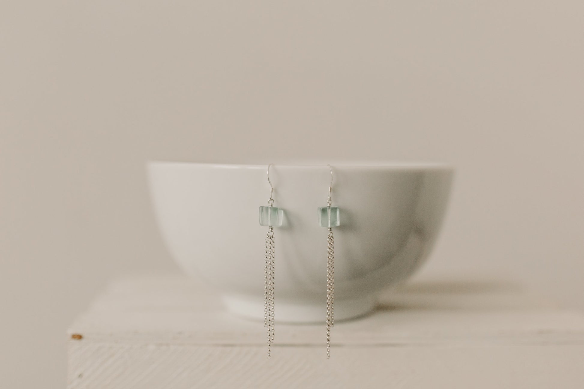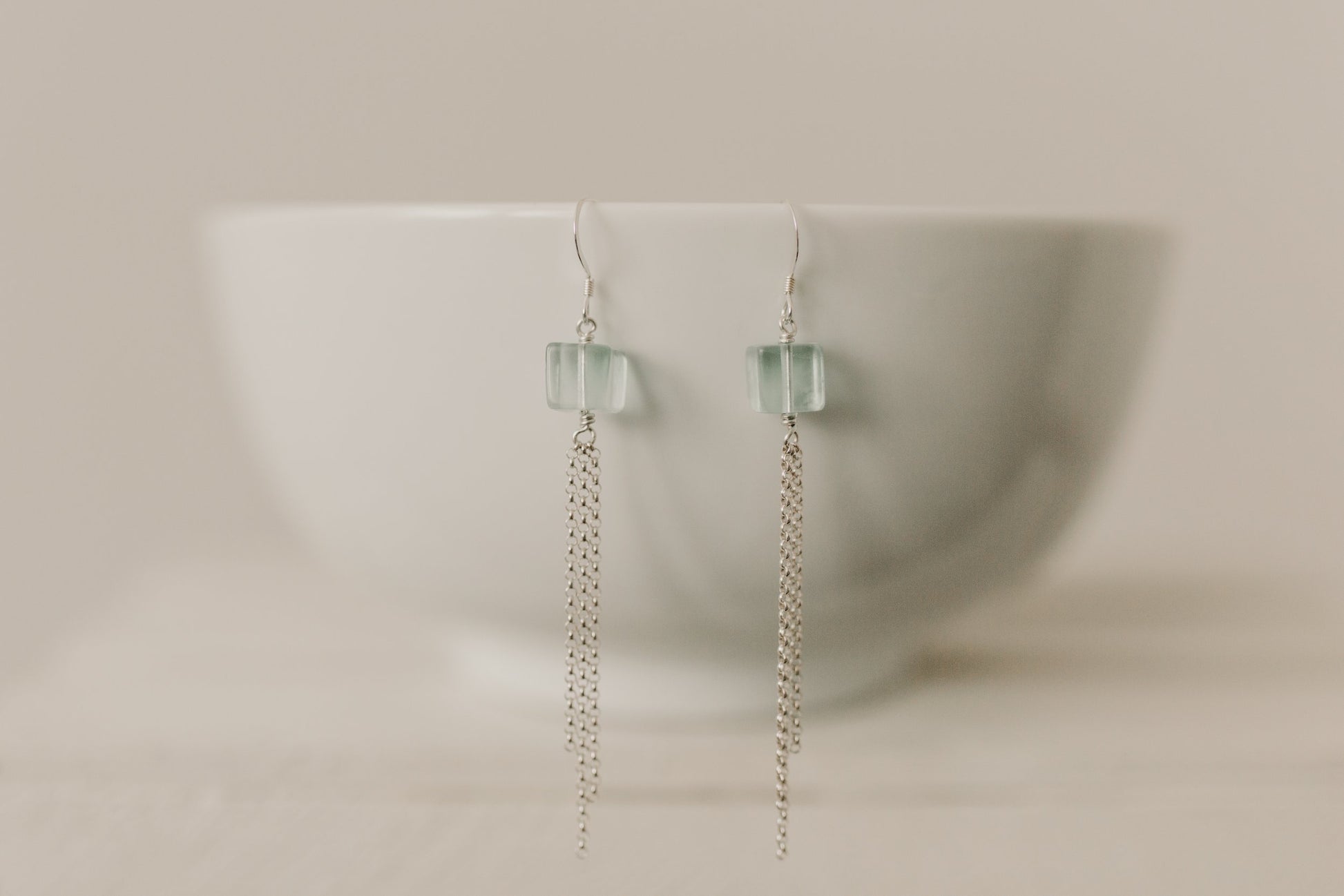 3.25" long, Fluorite cubes, sterling chain, wire, and ear wires.