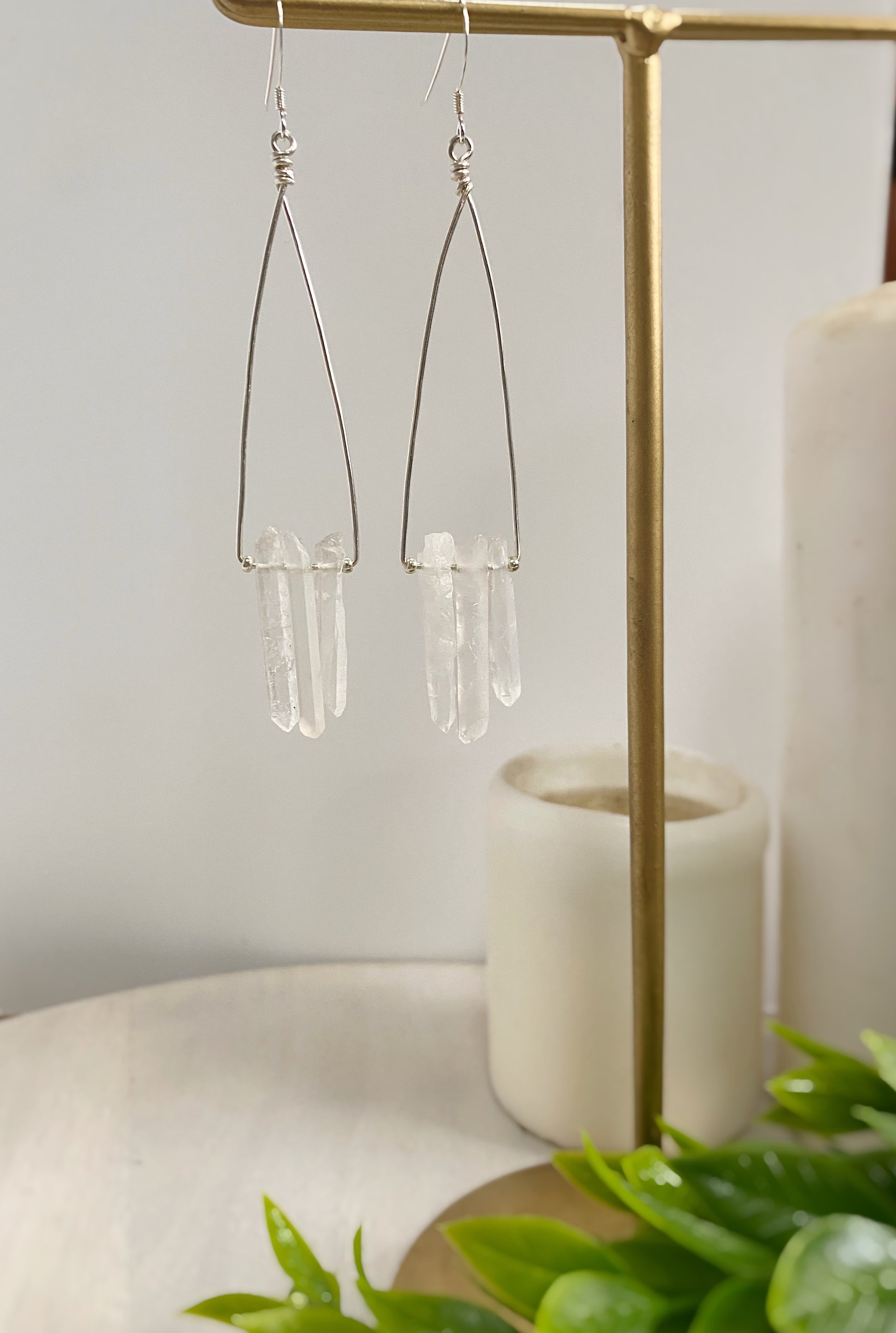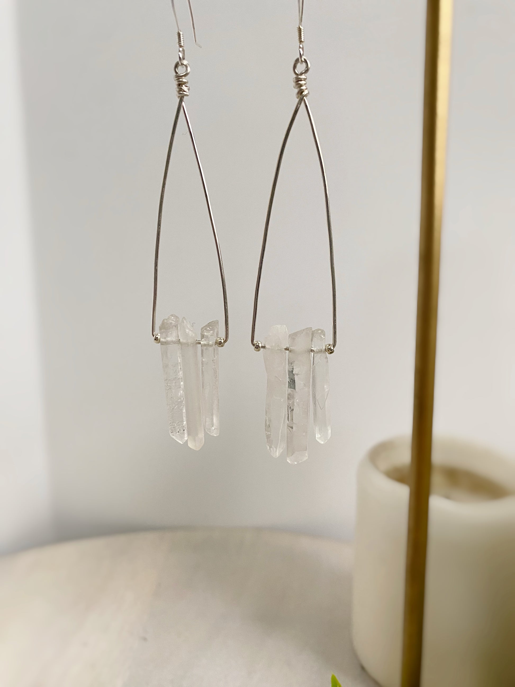3.5" long, Rock Quartz points, sterling silver wire and ear wires.
