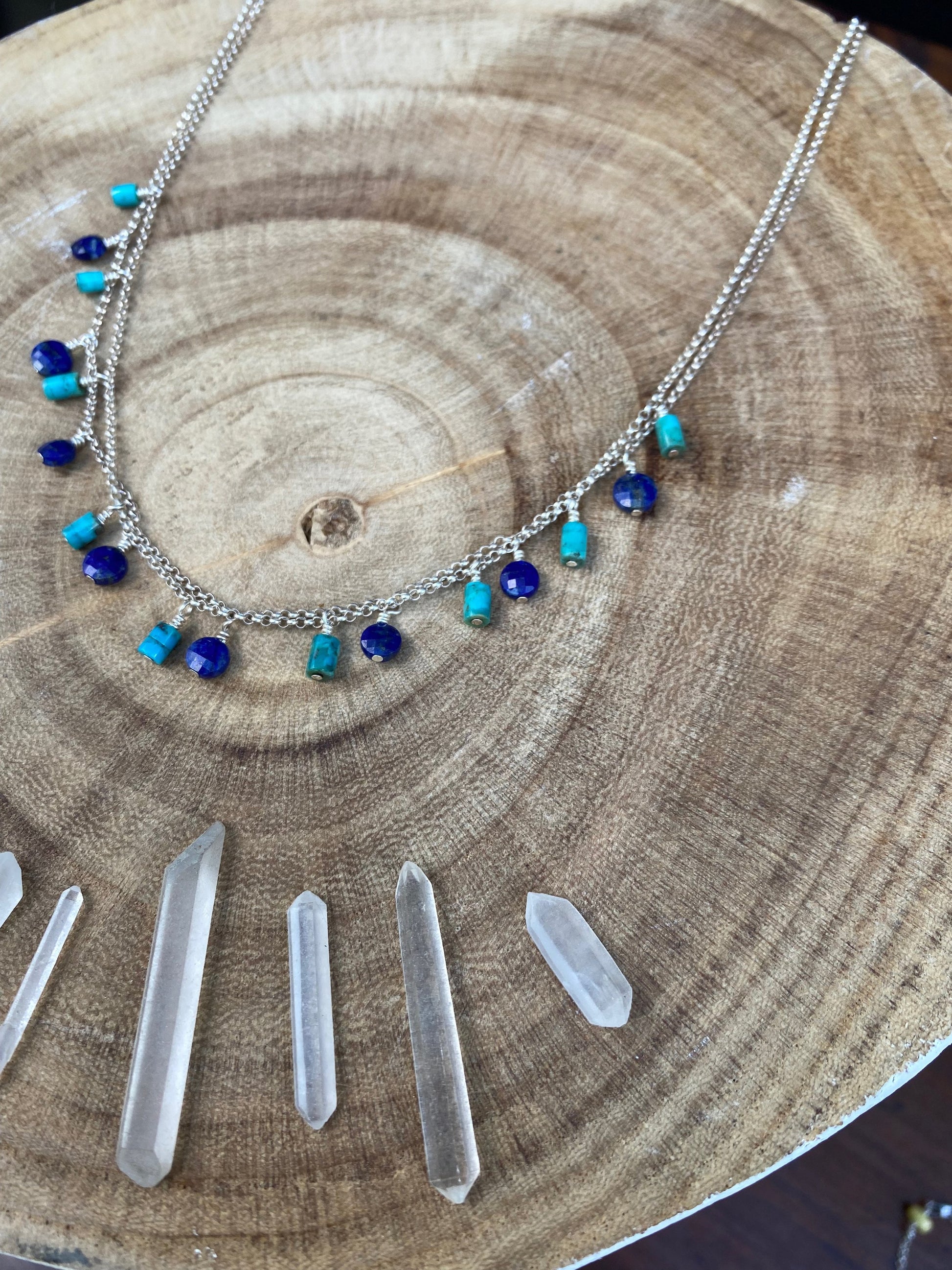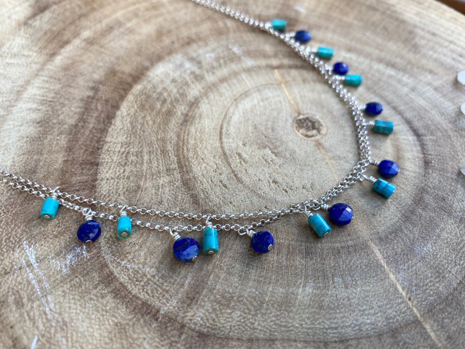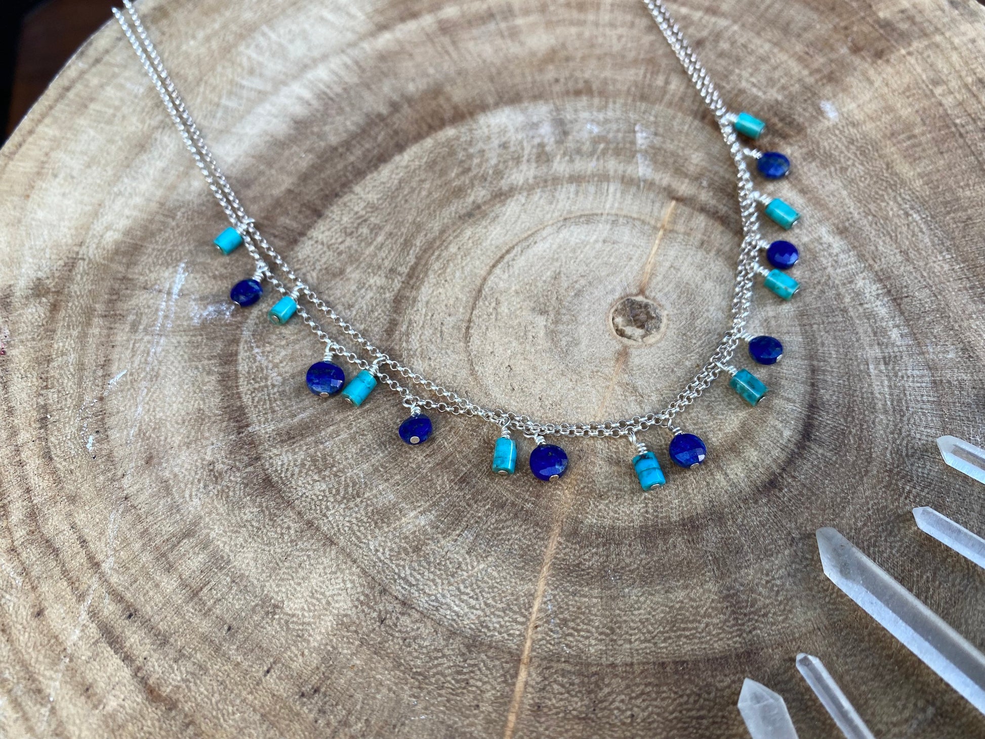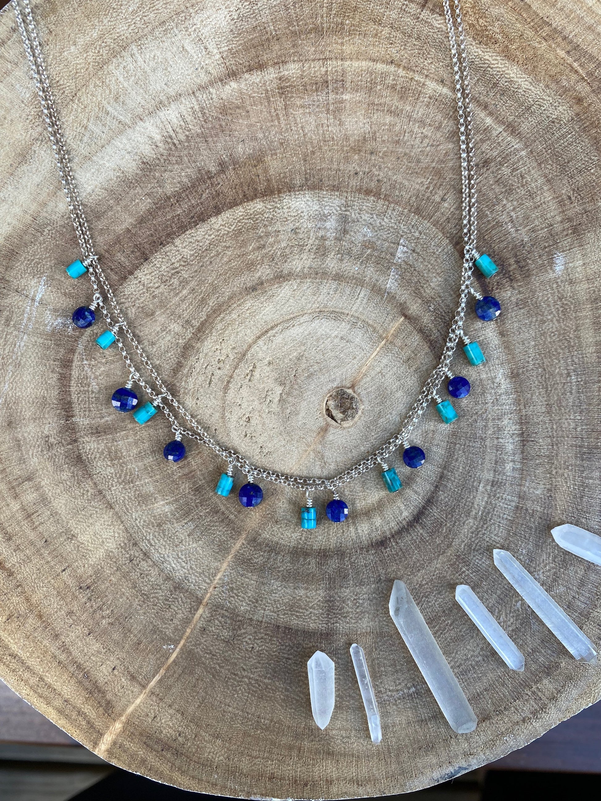 Small Turquoise & Lapis Lazuli Double Chain Necklace